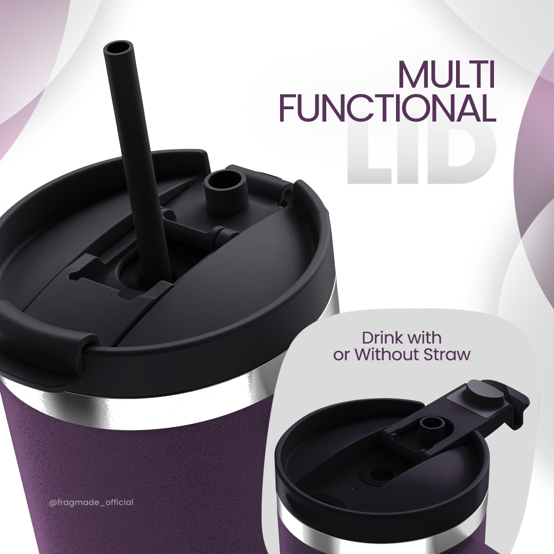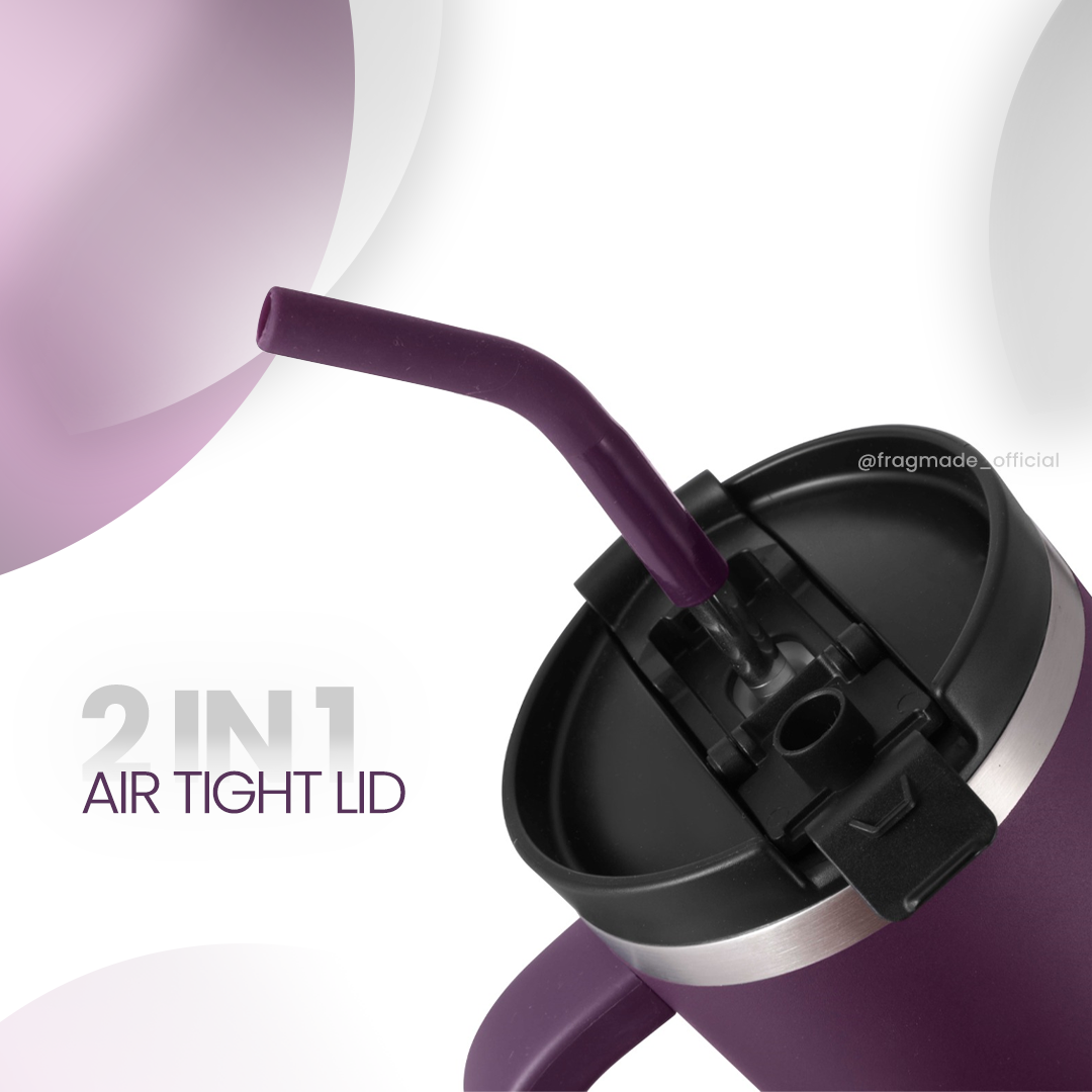 Fragmade Tumbler 1.2L helps you reach your hydration goals with fewer refills. Working, workouts, road trips — you’ll want this Fragmade tumbler always by your side. Thanks to Fragmade’s vacuum insulation, your water will stay cold for 12+ hours, 24+hrs when iced. The advanced FlowState™ lid features a rotating cover with three positions: a straw opening designed to resist splashes while holding the reusable straw in place, a drink opening, and a full-cover top. The ergonomic handle includes comfort-grip inserts for easy carrying, and the narrow base fits just about any car cup holder. Lastly, every piece of this stainless steel water bottle is dishwasher safe. Don't miss out on the hydration must-have you never knew you needed.